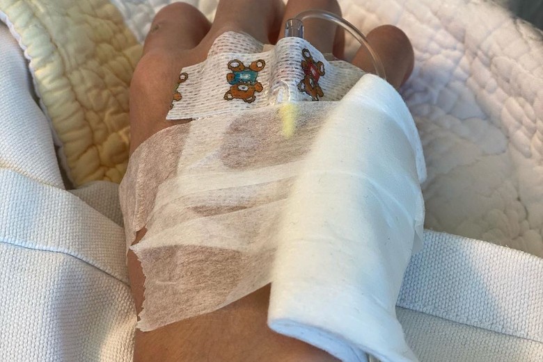 靚靚就上載了幾張照片,其中見魔童手上被插了喉,需要吊鹽水,疑似是因為魔童在旅行滑雪期間不幸受傷,但就並未能交代因為何事,帖文一出隨即引來了大量網民非常擔心!
