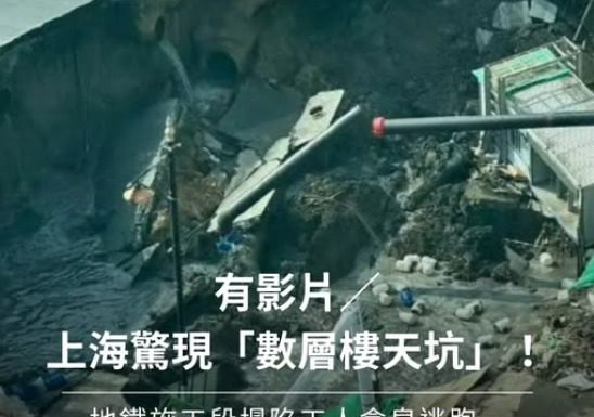 有影片/上海驚現「數層樓天坑」!地鐵施工段塌陷工人...