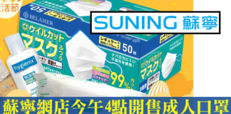 【昨日小童口罩大受歡迎】蘇寧網店今午4點...