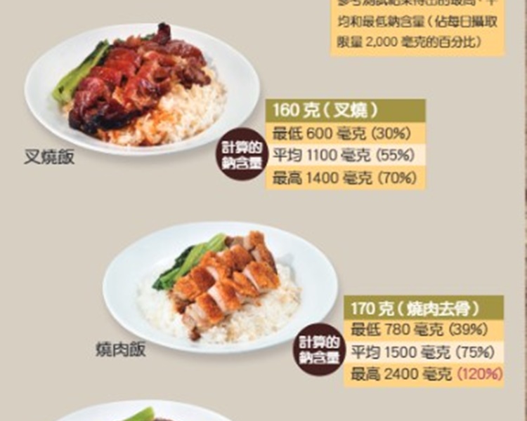 燒肉、叉燒、紅腸等燒味及鹵水鵝腎等美食,經常令大家食指大動,但常食用高鈉食品會增加患上高血壓、心臟病、中風和腎衰竭等慢性疾病的風險。