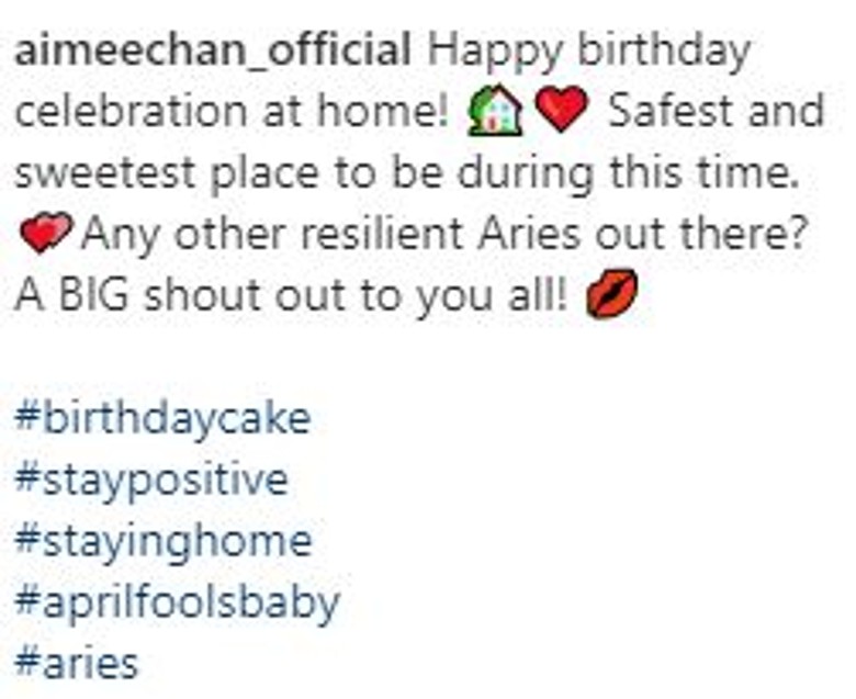 另一張相則是3名子女陪媽咪合照,十分溫馨,Aimee還同時祝福所有白羊座的朋友,不少圈中好友包括胡定欣﹑李施嬅﹑阿Sa﹑楊潮凱等,亦留言祝賀Aimee生日快樂﹗