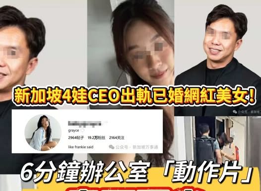 新加坡4娃CEO出軌已婚網紅美女!6分鐘辦公室「動...