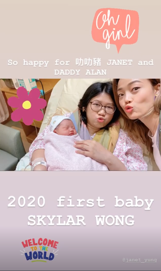 祖兒今日在IG分享了和翁瑋盈及BB女的合照,留言:「一個BB生咗個BB,感覺好得意,願SKYLAR快高長大,爸爸媽媽為妳驕傲。MAY YOUR COFFEE BE STRONG AND HER NAPS BE LONG #2020年第一個出世嘅BB #零時零分起歌」