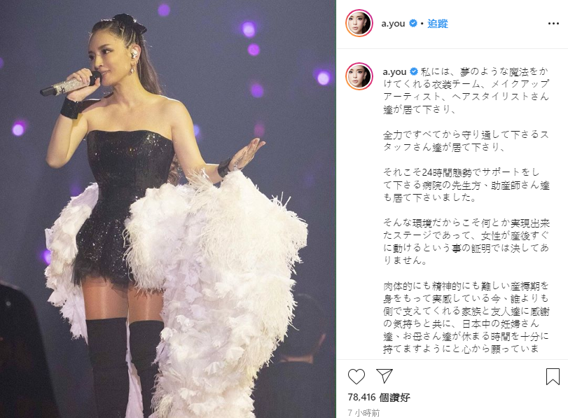 步姐今日在IG發文,推翻借肚說法,她先多謝其團隊每個單位,以及24小時候命的醫生及助產士,步姐對自己產後約一個月立即踏上舞台開跨年個唱,坦言是休息得不足夠,又以站來人身份稱: