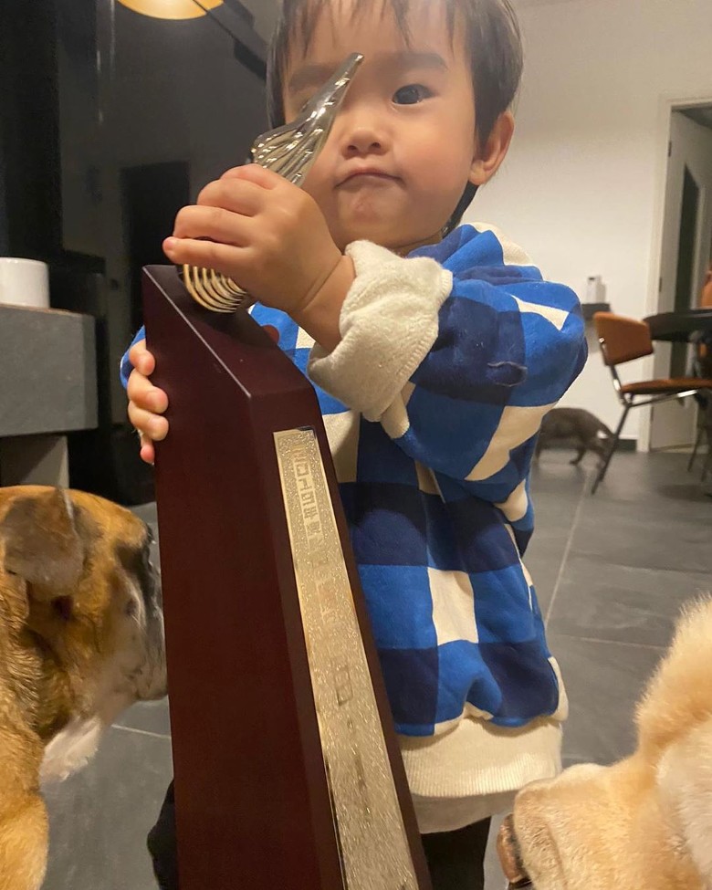 見到Abigail玩得那麼開心,相信柏宇都無計可施,唯有只好把獎座送給囡囡當做「新玩具」吧。