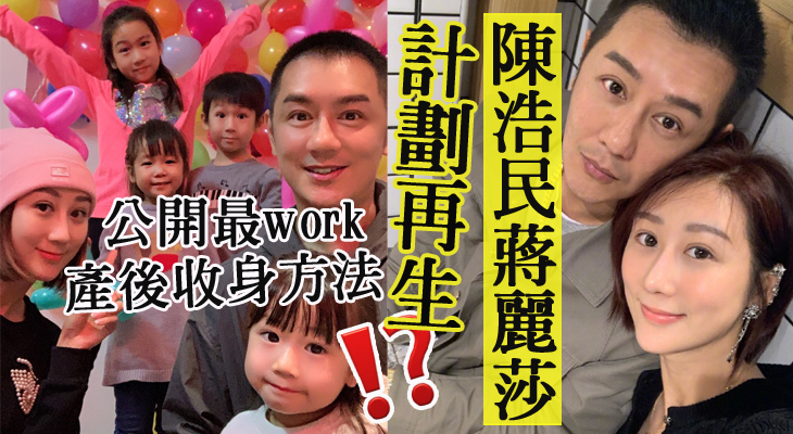 問到4個子女誰最活躍?陳浩民笑說:「我囉!」蔣麗莎指是兒子,可能家中只有他一個男仔,所以她都會花多點時間在他身上。3女兒可會呷醋?她謂:「又唔會,佢哋3個有一個圈子,好多嘢傾同玩。」陳浩民笑言:「即係3個女仔一個墟。(特別錫仔仔?)喺鏡頭前我個個都錫嘅!」再追個仔等兒子有伴?陳浩民稱會順其自然,是天注定,要來都歡迎。而蔣麗莎表示自己都喜歡小朋友。