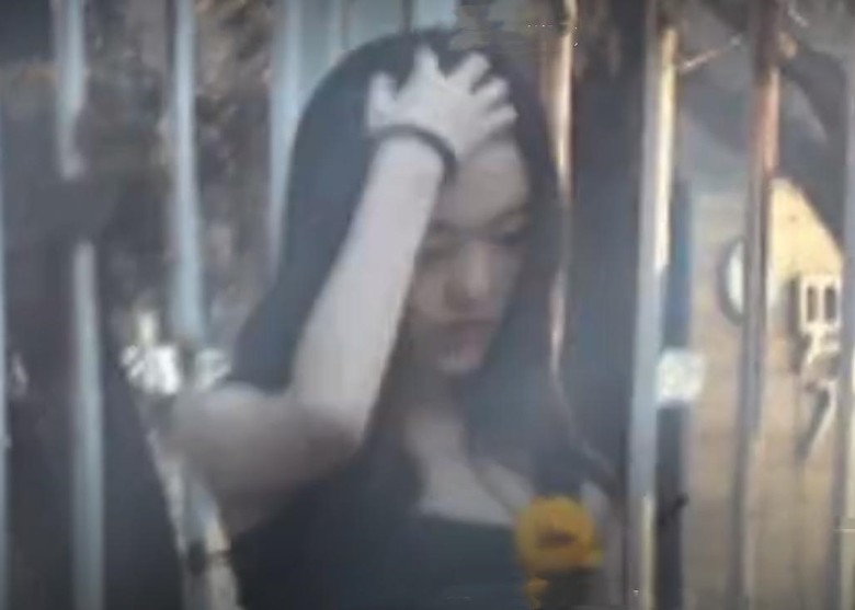 年僅13歲的她拿住手上的菊花,擺出各種超出其年齡的pose,期間不時撥髮,十分成熟。