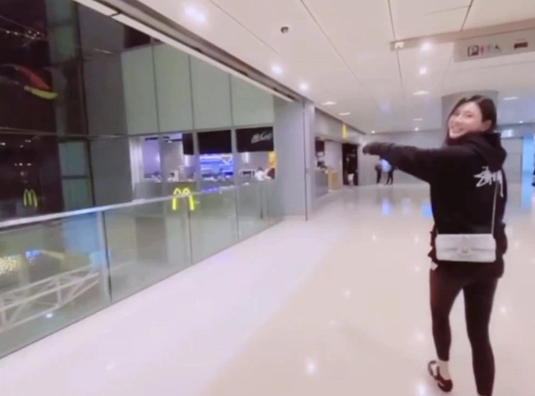 視頻裡的奚夢瑤顯得十分活潑,走路蹦蹦跳跳,像個沒長大的孩子。她不時回頭對著鏡頭甜笑,輕撥秀發,就像一個少女般,舉手投足也不像媽媽的身份。