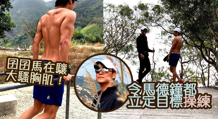生得高大靚仔嘅馬在驤,赤裸上身大騷胸肌,令着晒外套嘅馬德鐘即時比下去,馬德鐘說:「終於可以行山樂,感謝私人攝影師@江你MarjorieKaren。」