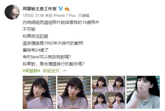 周慧敏演慳妹時是24歲,惟早前有大陸網站誤當她當時18歲,令她再一次勾起對慳妹的回憶。