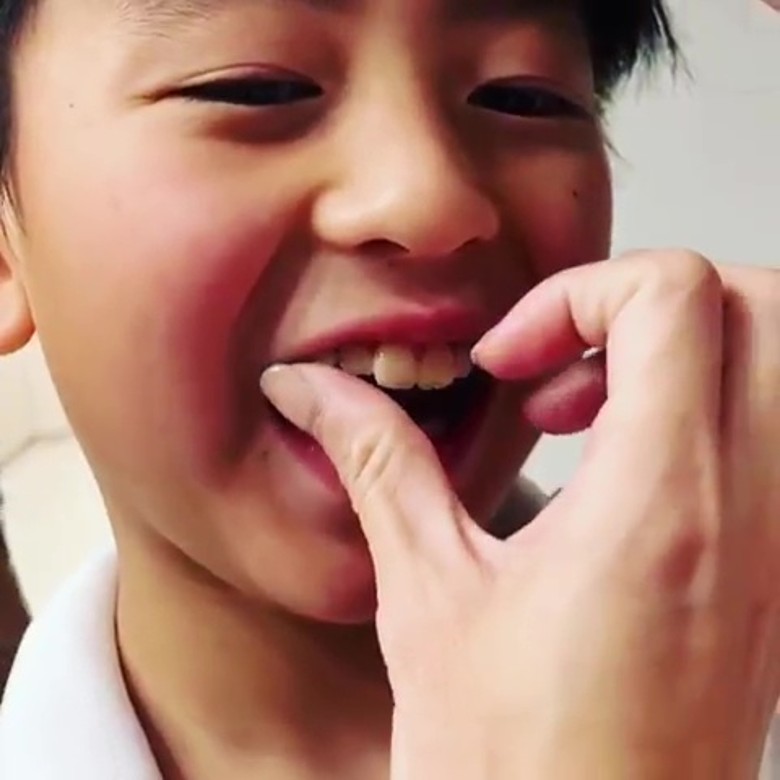 栢芝在社交網分享為Quintus剝牙的片段,留言︰「2020/1/13 6am。 #媽媽是牙醫#無痛剝牙#嫲嫲牙科保健」
