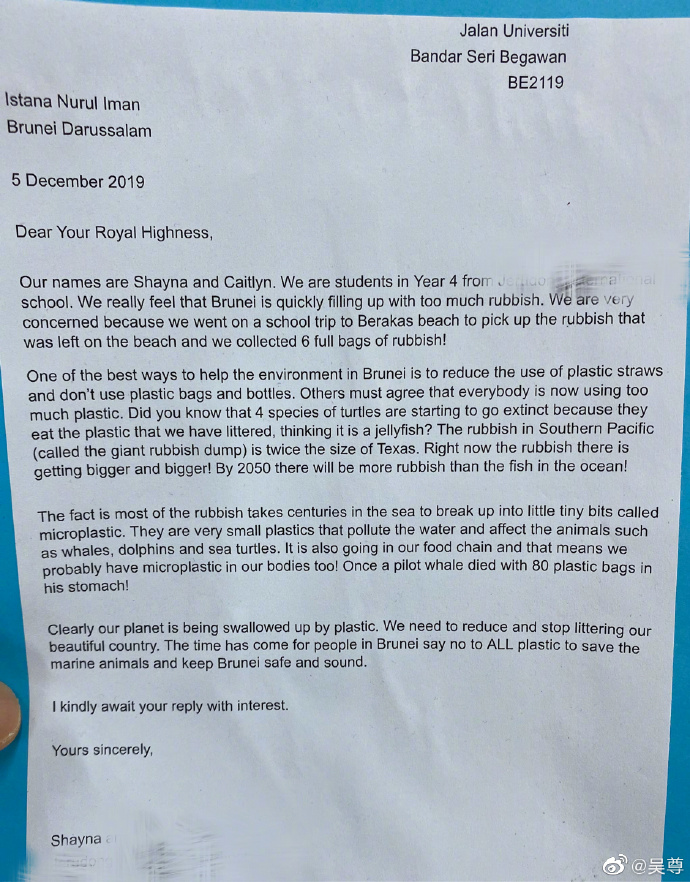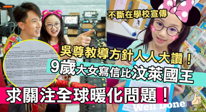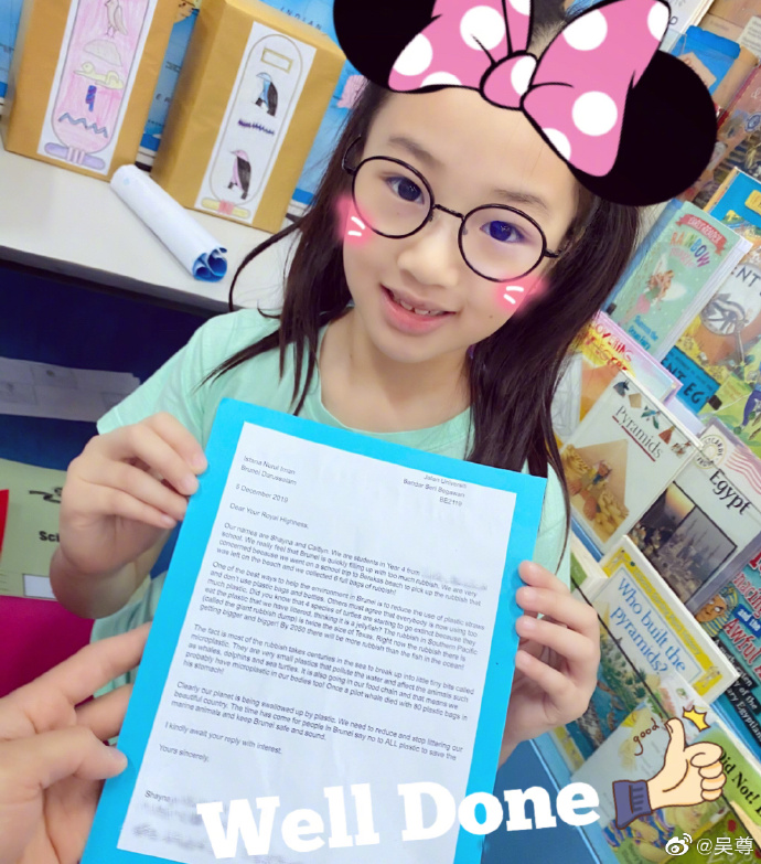 沒想到吳尊女兒年紀小小,竟然懂得要好好保護環境,而且還付諸行動,寫信給國王。