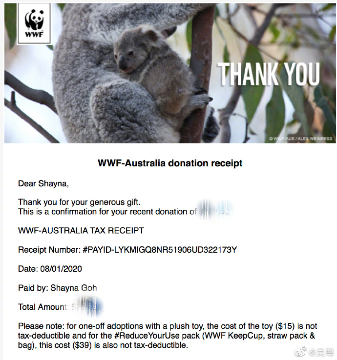 爸爸吳尊亦提到近日澳洲的大火:「實在讓人太心疼了……這也已經是一個很殘忍的警告!讓我們一起去改變,去保護他 。」,自己亦以身作則為此事捐錢去救助澳洲受影響的動物,希望可以盡一分力。