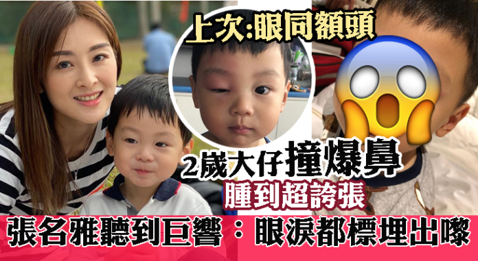 前港姐張名雅婚後育有兩名仔仔,經常在社交網與網民分享湊仔生活。她今日就上載了幾張大仔Mario的照片,見到相中Mario個眉心至鼻樑山根位又腫又瘀,還有血漬,睇見都心痛!