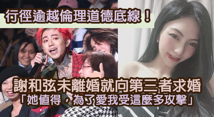 台灣歌手「搖滾壞小子」謝和弦上月被當時正大肚嘅混血辣妻戴怡軒(Keanna)檢舉涉吸食大麻被捕,跟手佢行為愈演愈激烈,除咗公開承認有個小三主播莉婭(Liya),更加大鬧台灣多個電視台及傳媒機構,又噴花外牆又強行入私人大廈等,真係一日誇張過一日……