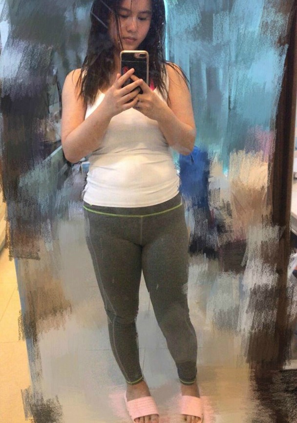 經過一個月狂食,Larine已明顯肥了不少,她說:「身形係同之前有唔同,開始有好多唔方便嘅時候,衫着唔落,要買過晒。