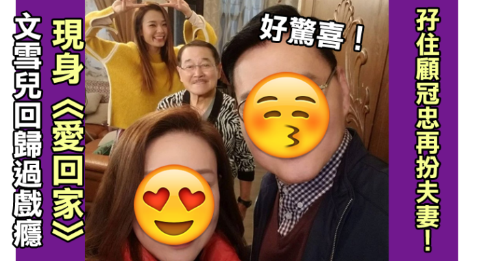 藝人文雪兒近年回歸無綫客串拍劇過戲癮,昨日她聯同昔日拍檔顧冠忠,齊齊客串演出處境喜劇《愛.回家之開心速遞》,為觀眾帶來驚喜。顧冠忠當年頂替徐少強主演電視劇《天蠶變》,是邵氏演員出身。