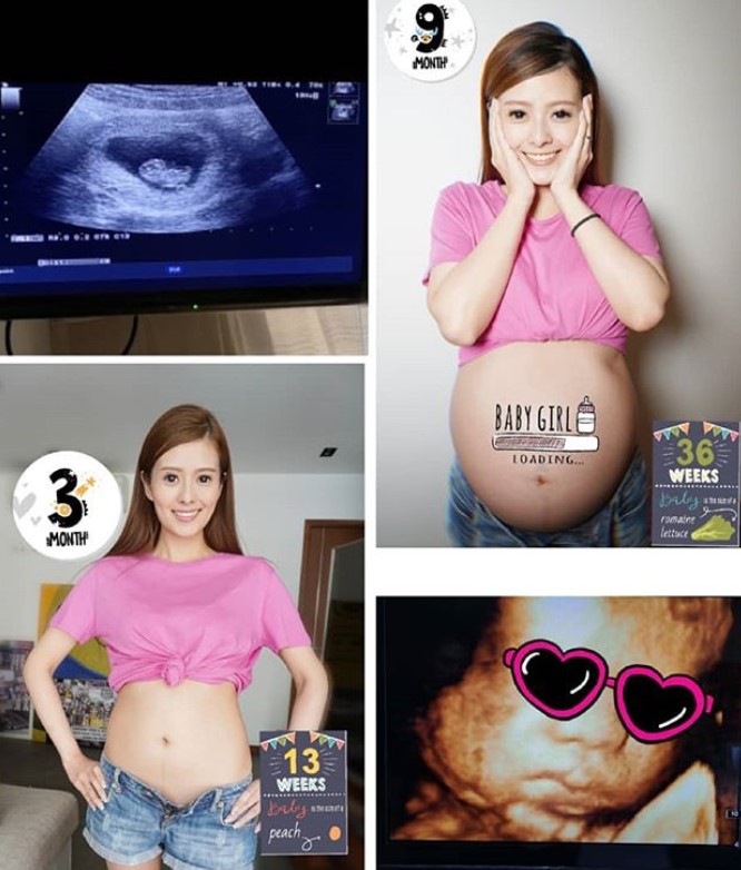 日前她又留言說:「《托着馮寶寶奇妙的旅程》已經進入了懷孕晚期的最後幾個月階段了,開始有些少緊張……這是BB 2個月的超聲波相片和我懷孕3個月時的照片,BB 8個月的超聲波相片和我懷孕9個月的照片比較。」