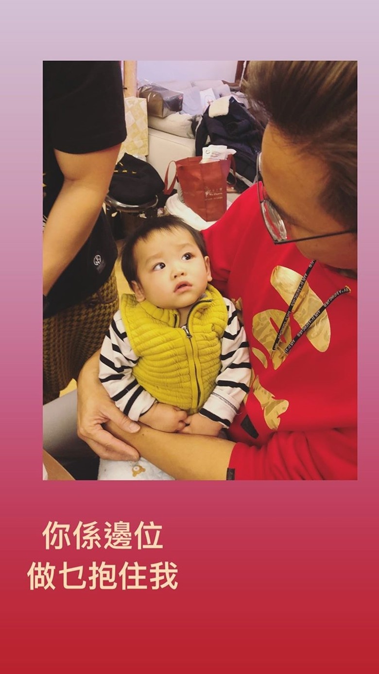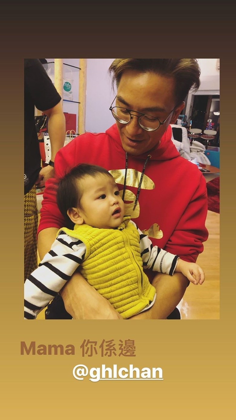 大家玩完之後就終於到大哥鄭嘉穎囝囝出場;不知是否因為叔叔馬國明戴上了眼鏡不認得,在抱Rafael的時候個樣十分抗拒,好搞笑!就連媽媽陳凱琳都幫囝囝配上字幕話好驚,勁得意呢!