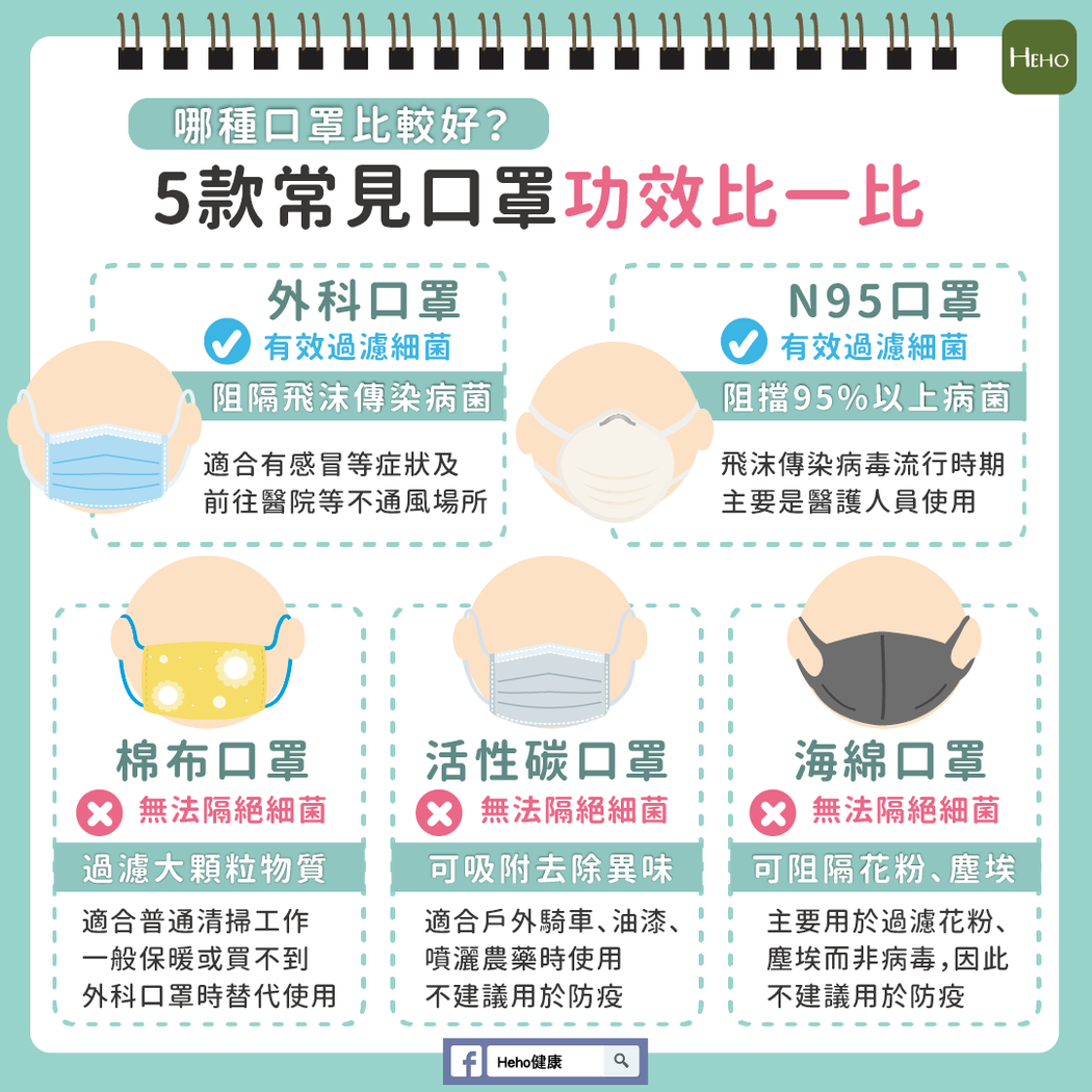 在呼吸道傳染病盛行的時期,做好個人衛生和環境衛生是基本的防治之道,其中口罩更是不可少。想要預防傳染病,口罩要選哪一種才有防護的作用呢?其實每一種口罩都有其用途,在適合的場合戴正確戴口罩才能夠達到最大的效果!以下就來介紹 5 種常見口罩的功效及用途。