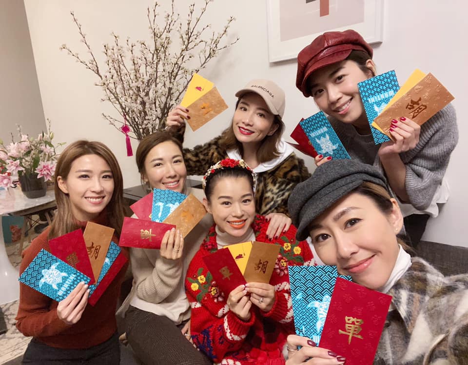 6位姊妹一齊晒利是,其中「豹嫂」胡蓓蔚用了印有夫姓「單」字的利是封,另見有一封「胡」字的,很大機會是尚未出嫁的胡定欣所派;至於胡杏兒,就用上其丈夫李乘德所開的夜店的利是封。