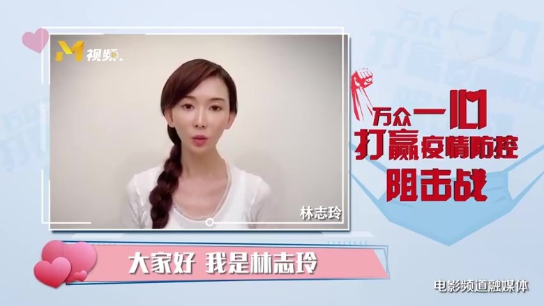 她在影片中說:「大家好,我是林志玲。首先向第一線的醫務工作人員致敬,你們是真正的英雄,感謝你們無私的奉獻,希望你們都能平安歸來。」
