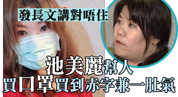 近日不少巿民搶購口罩,在《愛.回家之開心速遞》飾演「池美麗」的藝人鍾凱琪,日前在社交網發文表示特地拜託朋友在日本幫她買了口罩,並有幫親友代買口罩眼罩,可惜就搞到一肚氣,更被親友誤會她吃人血饅頭,令她在社交網放負。
