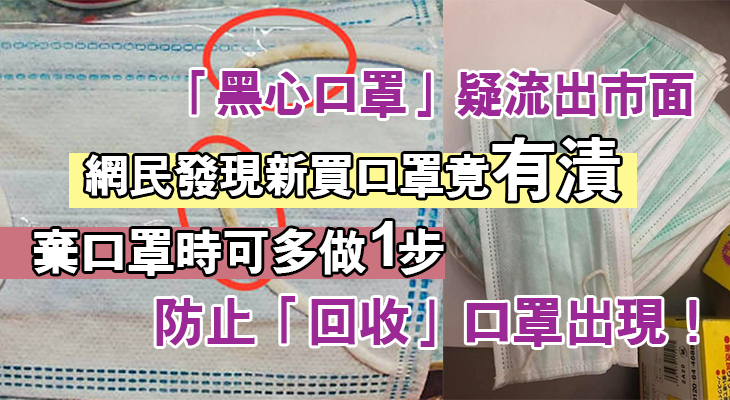 某區有街坊曾拍到,有人跪坐在路邊,疑似收集已用過的口罩,未知何用但已有許多報導都提醒市民小心誤買到「黑心口罩」。