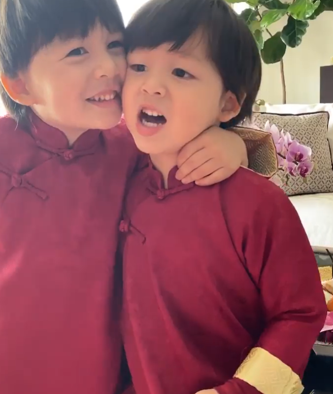 雖然,在滑雪的照片中未能見到細仔Avner的身影,未知是否年紀還小,夫婦二人擔心一同帶着兩位少爺會危險,不過早在大年初一的時候,周汶錡就已經捉住兩位少爺仔拍片,與大眾說聲「恭喜發財」拜年了!
