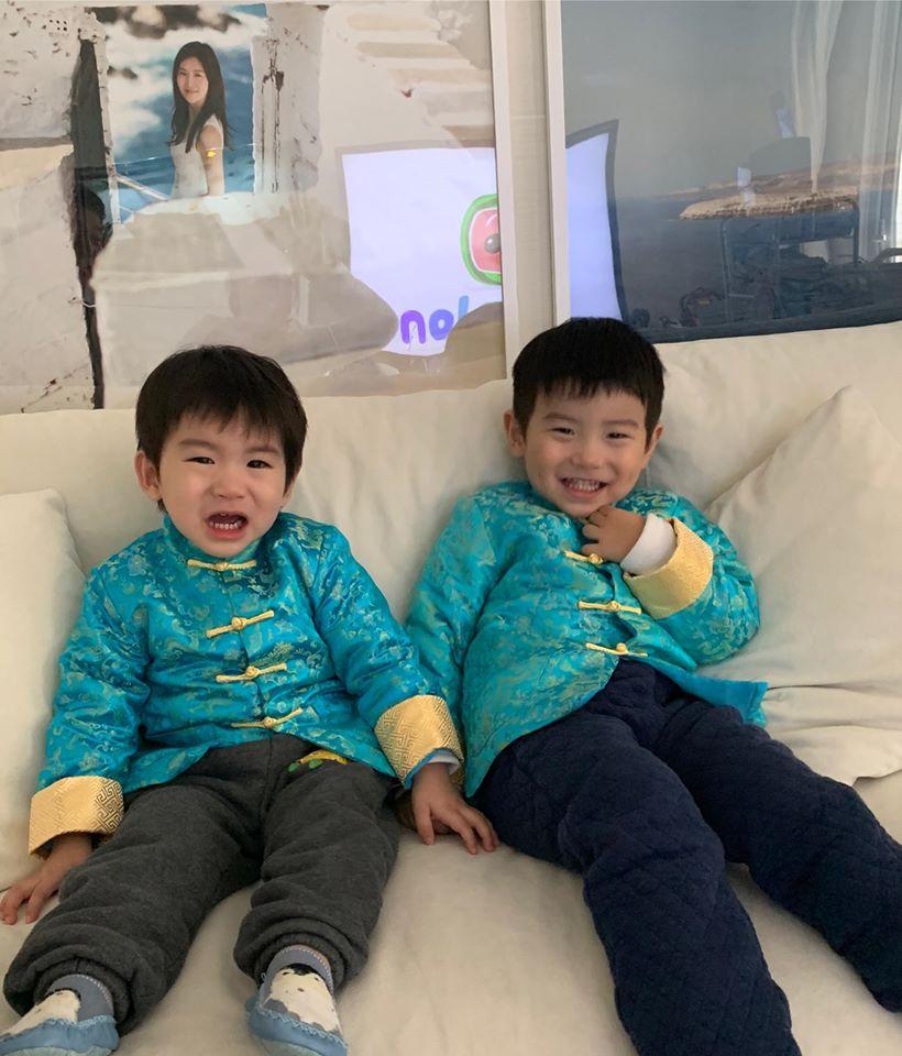 農曆新年,她就花心思幫一對寶貝兒子打扮,穿上中式賀年裝拜年,日日著新衫影相。