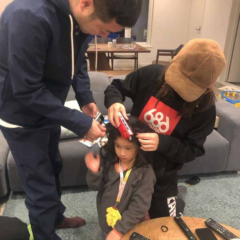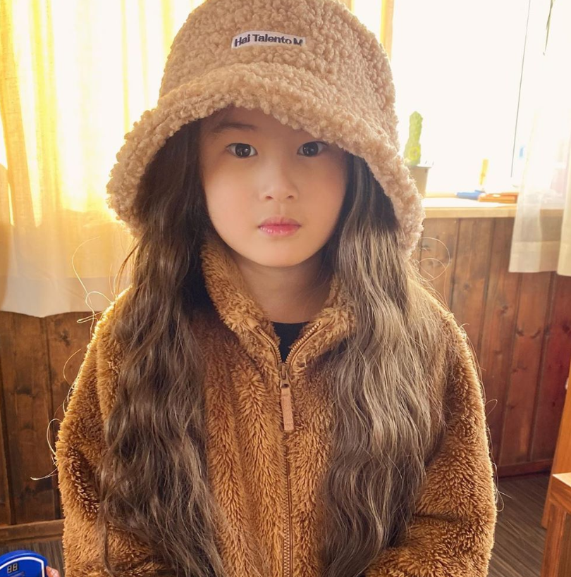 鄭希怡的女兒梁浸浸向來都出名擁有一把長長又攣曲的秀髮,相當可愛。