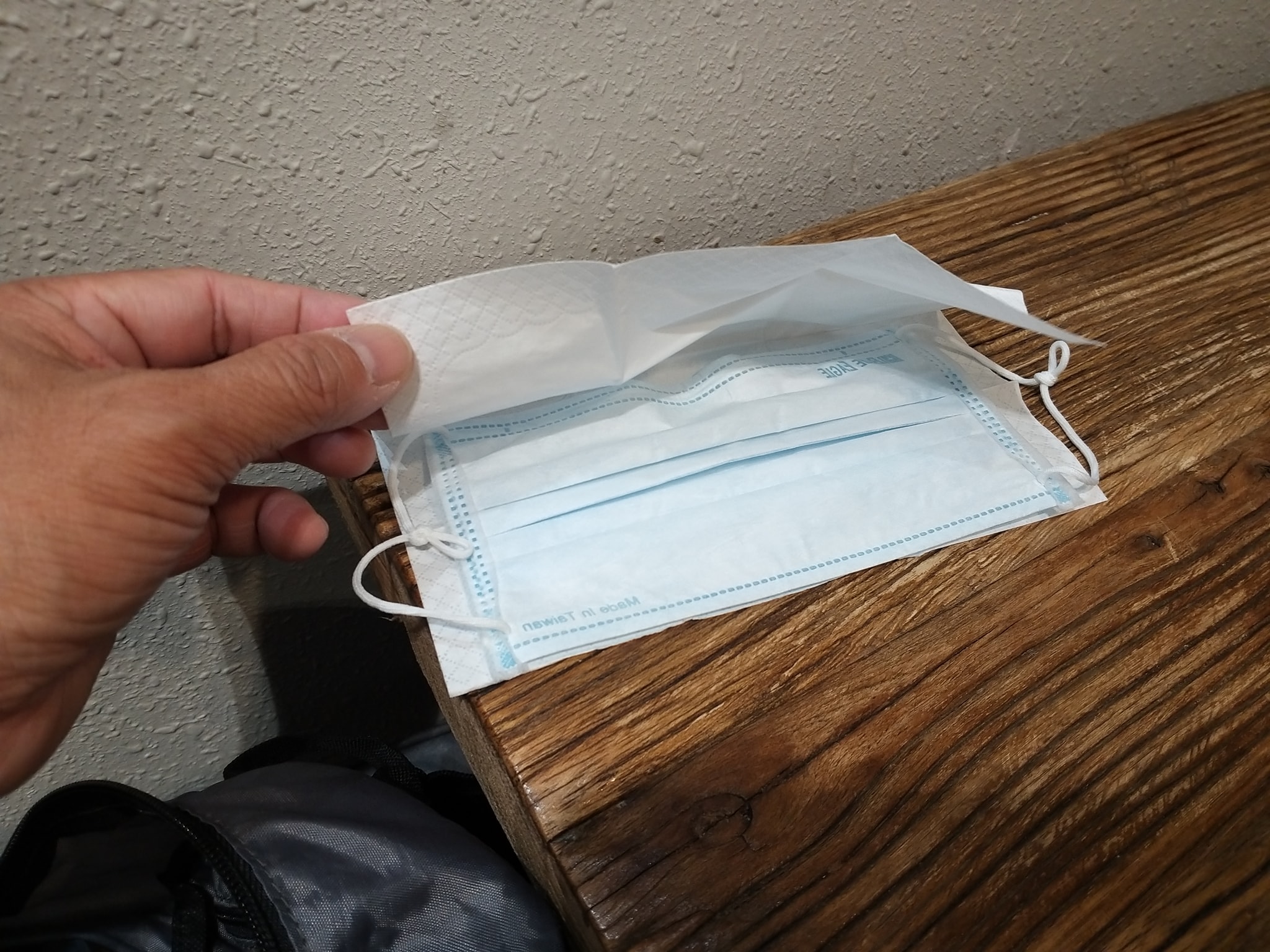 4.脫下口罩,再後攤平在紙巾上。