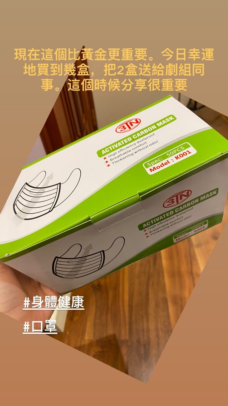 這日莊思敏就在社交網上曬出自己出手的「成果」,更表明這一盒口罩「比黃金更重要」,而她亦相當好心地分享給同劇組的同事使用,可謂「雪中送炭」。