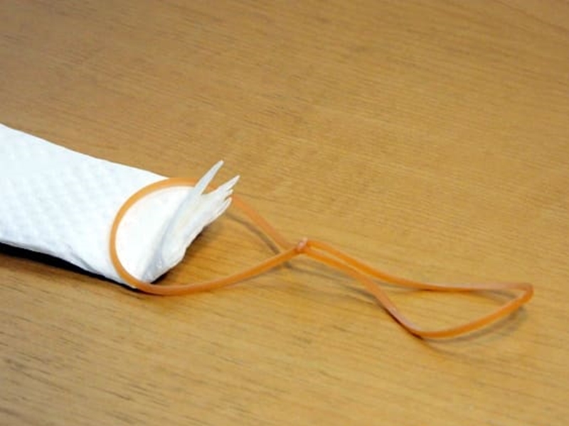 6. 將4條橡筋打結成2條蝴蝶形的橡筋。