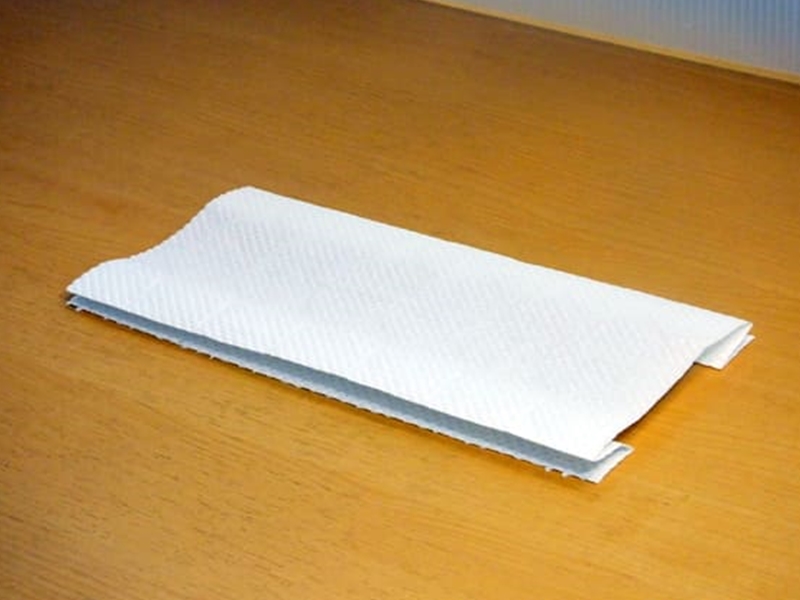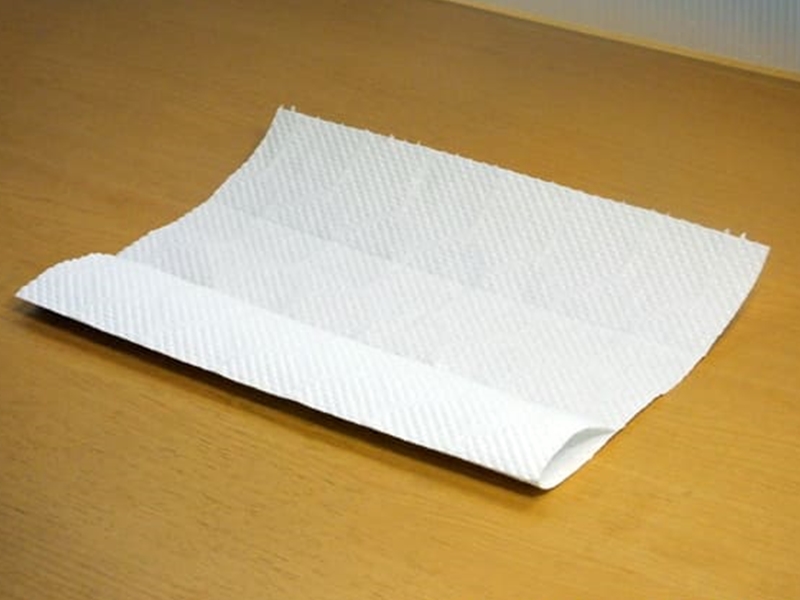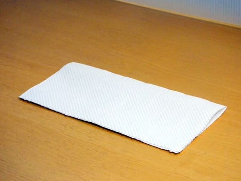 1. 將廚房紙對摺,然後將紙打開鋪平。
