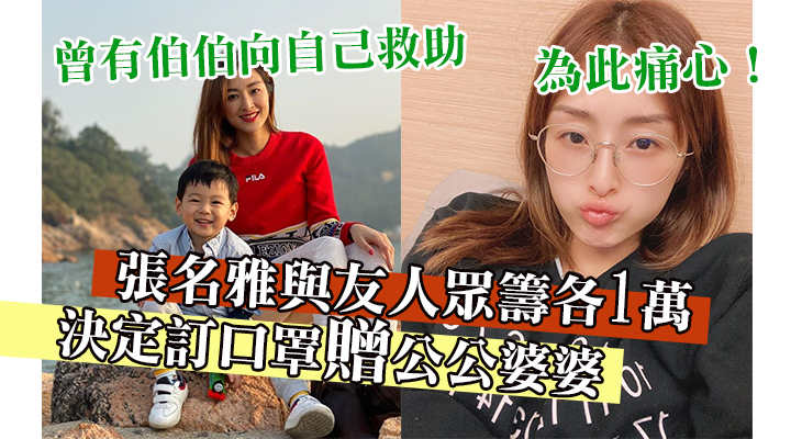有見及此,張名雅之後決定與朋友每人夾一萬訂口罩回來,並希望可以派給有需要的公公婆婆:「我知道社區裏面好多老人家都負擔唔到昂貴嘅口罩,亦唔識上網,唔知係邊度買。所以幾日都用同一個口罩。其實咁樣仲危險。我自己一個人嘅力量有限,搵咗幾個好朋友大家諗住每人夾一萬蚊訂一批口罩番嚟可以捐出去幫班公公婆婆。大家,你哋有無諗過捐口罩?例如家裏有一盒,兩盒三盒口罩都可以捐一個出來?集小成多?然後我可以親自安排派送。又或者有無人可以介紹邊度有口罩賣?以上只是一個小小想法,大家有沒有甚麼建議?」