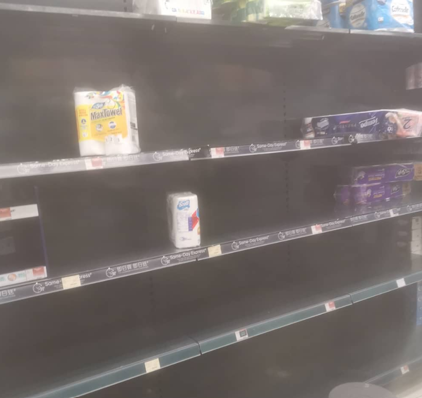 然而,到了這星期,事情發展得更加可怕,現在超市就連廁紙都被搶購,網上均流傳不少有關市民就了剛推上貨場準懂備上架的廁紙,都沒有放過,大家都爭先恐後地掠奪,情景令人難以至信。