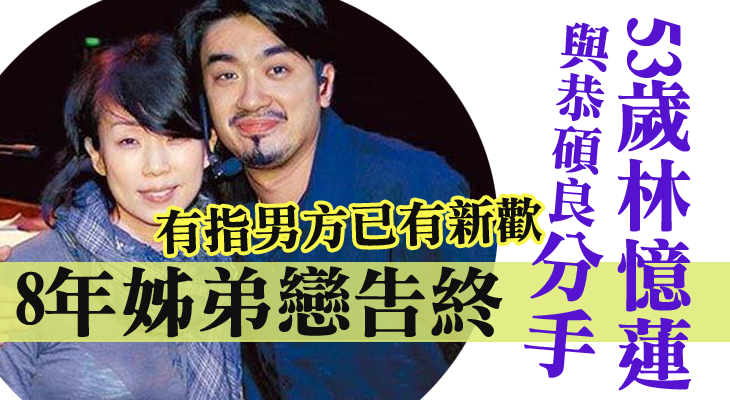 53歲天后林憶蓮與年輕他11歲的男友恭碩良拍拖8年,一直恩愛,可是台灣傳來消息指,憶蓮透過經理人陳鎮川承認二人於1年前已分手,但雙方仍保持朋友關係,更有指恭碩良已另結新歡。