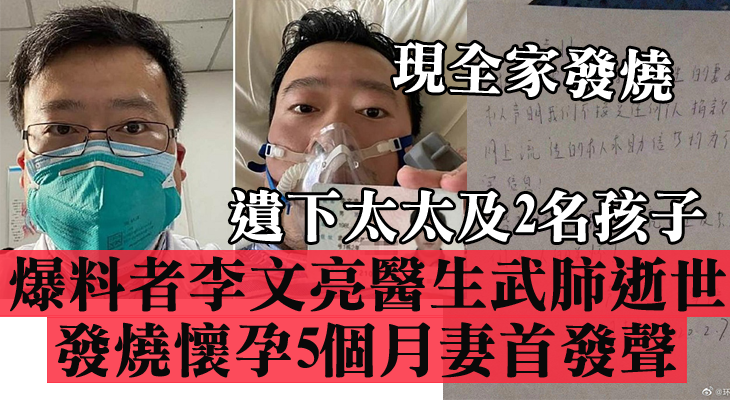 據報道,李文亮是內地最早發出疫情消息的醫生, 他之後因散播謠言被當地警方拘捕,受到當局訓斥問責。期間不少網民為他們聲討,他之後被報道指感染武漢肺炎。