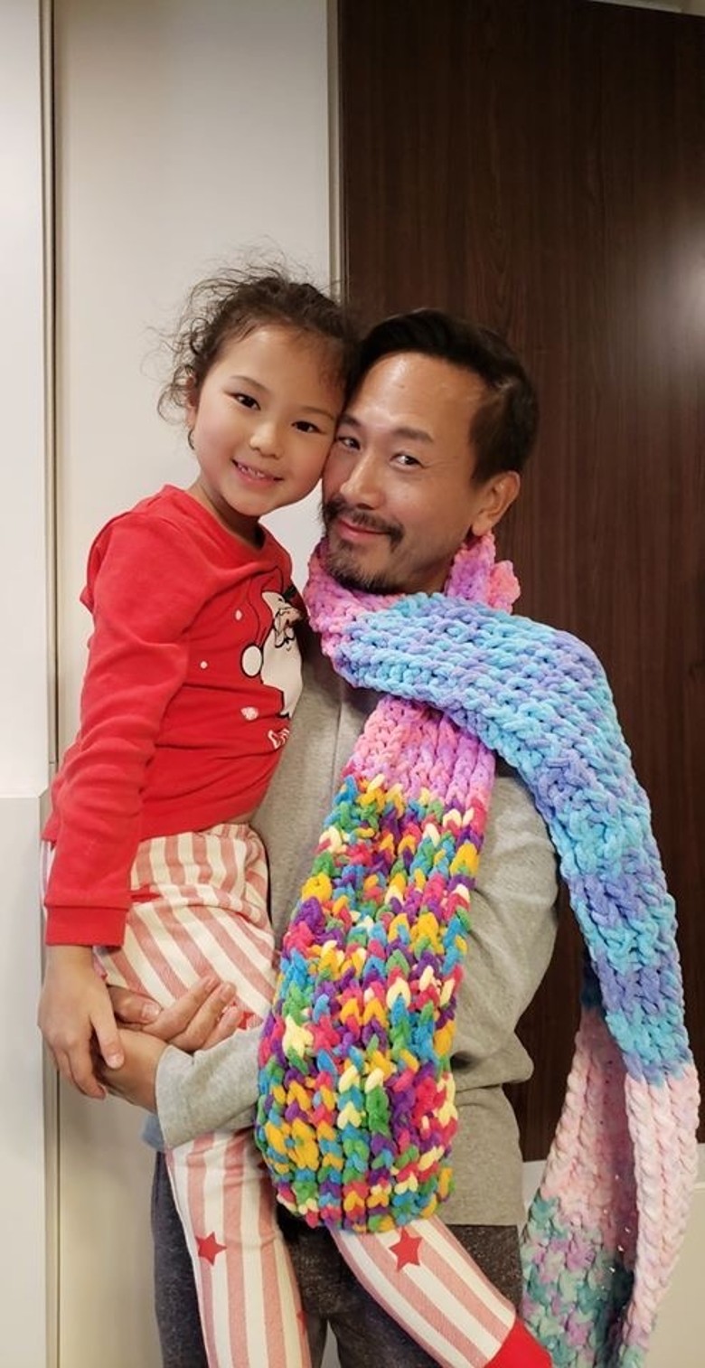 而女兒陳禛就在幸福的家庭之下長大,亭亭玉立,今年就趁爸爸的生日化身「織女」,編織了溫暖牌頸巾,簡超級厲害啊!