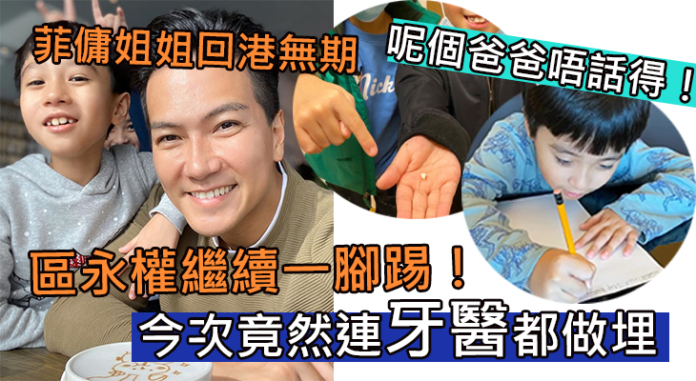 區永權就在社交網上撰文表示:「在家千日好!但在家咁多日…又點算好?其實基本上係節目豐富,絕無冷場,更加需要乜都要自己來,乜嘢都要做,包括做功課、做家務,同埋做牙醫!今日阿Bu又做甩牙仔,整個過程簡直係快!靚!正!完全唔痛,仲唔使花費一分一毫,實在太正啦!」