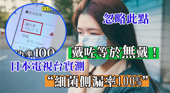 日本MBS電視台的節目討論口罩的正確帶法並進行實驗,一名女受試者戴口罩,故意不貼合口罩的鼻夾處。接著用特殊設備測量口罩外側空氣的細菌,有多大機率透過縫隙進到口罩內側和人體,測量結果竟然高達100%。