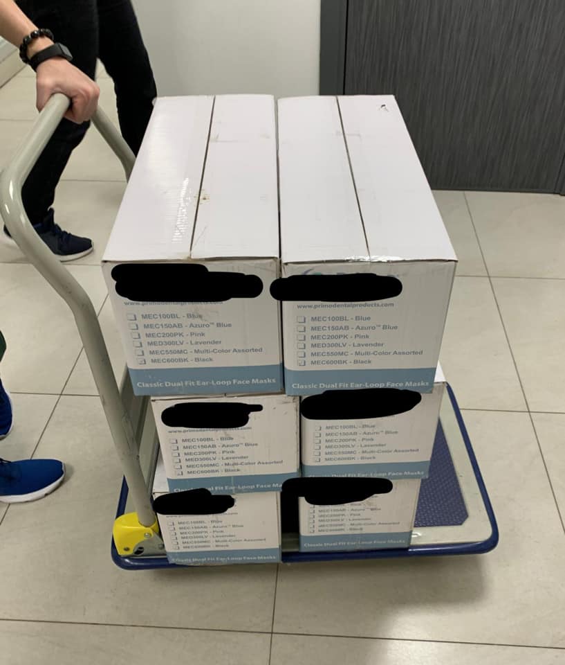 她寫道:「通過小學同學的物流公司,成功收到過萬個口罩,我分到3,000個。其中1,000個送予大埔仁醫林醫生分發,1,000個予陳百強影迷會分發。500個予香港退伍軍人聯會分發給老兵。餘下500予傳媒朋友及公司員工。附上葡萄牙生產商的現價單,據知貨源是不缺的,只是價錢比我訂的時候貴了。」