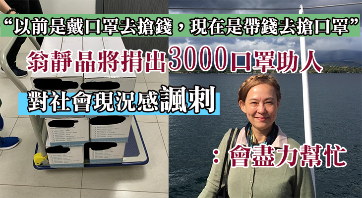 【點解做唔到】翁靜晶將捐出3000口罩助人 對政府處理手法感遺憾