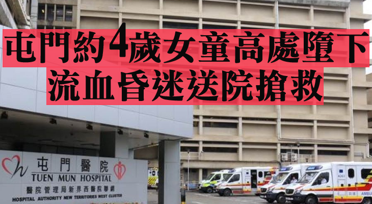 Fun享健康家庭生活生活時事親子 【疑獨留女兒在家】屯門約4歲女童高處墮下 流血昏迷送院搶救不治 2020-02-21 Share on Facebook Tweet on Twitter 屯門蝴蝶邨蝶舞樓,下午約2時,警方接報獲一名保安員報案,指一名年幼女童從上址高處墮下,倒臥地上流血昏迷,警方及救護員到場,將女童送往屯門醫院救治,可惜最終不治。 據悉,女童年約4歲,警方正圍封現場調查。最新消息指女童與家人居於上址一高層單位,墮樓時家中沒有成年人,父母不在家,警方正設法尋找女童的家人。 閱讀全文