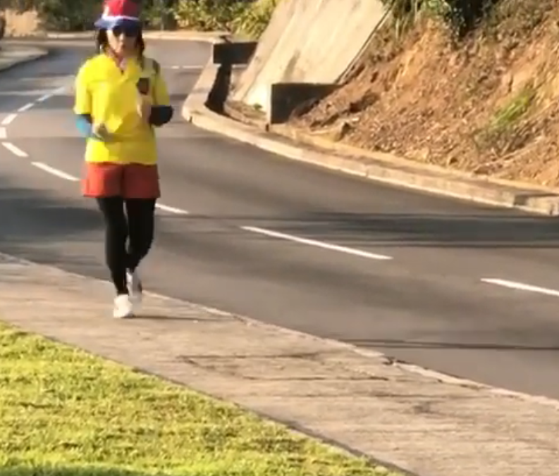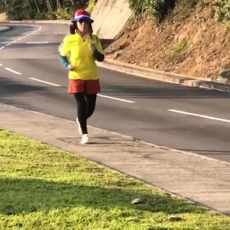 但Liza姐就連跑步衣着都有一份堅持,她在社交網上載一段由老公羅家英拍下的短片,見她戴着藍和紅色配搭的漁夫帽、架上太陽眼鏡,黃色短袖外衣內襯綠色長袖衣凸顯Layer效果,下身則以橙色短褲仔襯上黑色Leggings,再配埋對白色運動鞋;