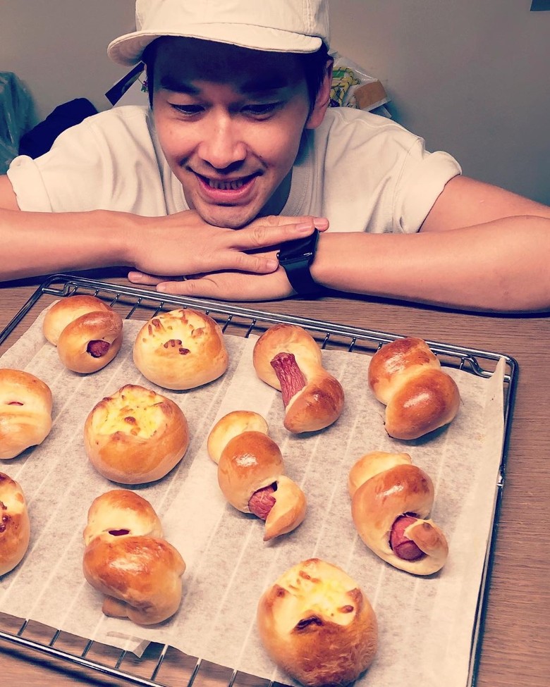 少爺占留言:「抗疫期三大活動:煮嘢食、行山、網購。今天參與『妹之麵包工作坊』,由妹之E媽帶領一班退休老人製作麵包。如果以作狀台式叫法的話,我今天製作了:手工酵素香腸卷、現造麻糬芝士波波、幸福滋味蛋沙拉烘焙人文生活麵包。」