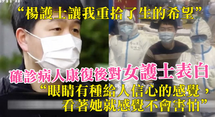 武漢一名叫劉猛的新冠肺炎康復病人,對住院時照顧他的楊姓護士一見鍾情,為尋找心中愛人,他直接上鏡告白「是楊護士讓我重拾了生的希望,她的眼睛有種給人信心的感覺,看著她就感覺不會害怕。」
