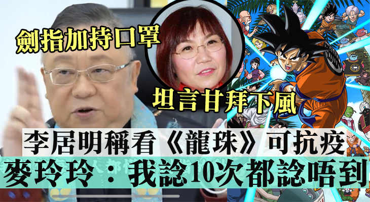 堪輿學家李居明日前教人用劍指「加持」口罩後,最近以占卜算卦得出瘟疫有望在4月8日平息。不過最令網民震驚的是他建議電視台重播《龍珠》集氣抗疫,他指中國民間流傳的虛構人物孫悟空,代表新金,不怕火毒,而《龍珠》的「悟空」一角,其實是參考《西遊記》的,加上玄學上的「龍」和「牛」是用來散熱解火毒,因而提出播《龍珠》助抗疫。此等説法震驚不少網民,更有電視台即有免費看《龍珠》服務,大師果然號召力强勁!