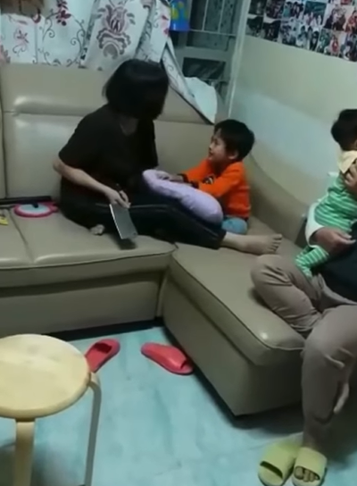 不過據facebook專頁「生仔要考牌系列」中,流傳了一段短片,內容大約是有關男孩在沙發上瀨尿後不停地跳,令嫲嫲非常生氣,更亮出一把菜刀,先抓住男孩,恐嚇着他作勢要斬男孩雙腿,引起了一眾網民的熱討。